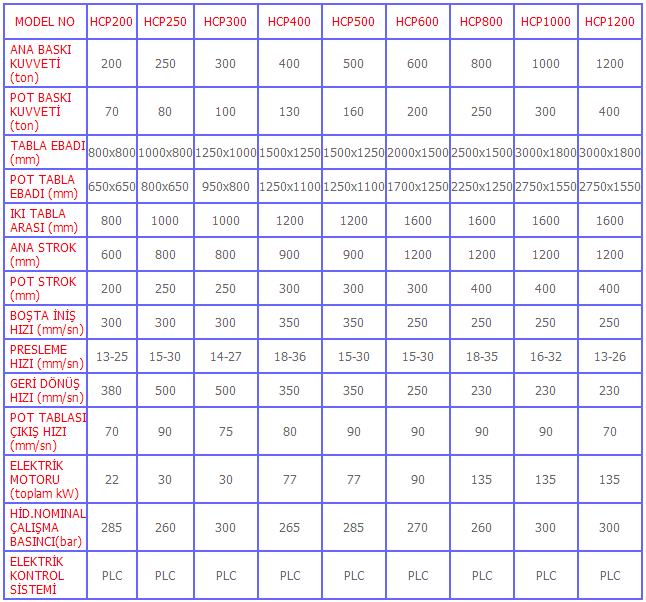 H型液壓機臺具體參數(shù)請看以下報表: