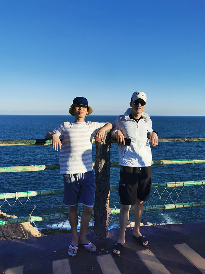 稍作休息后,下午3點(diǎn)多,我們游覽了觀(guān)景臺(tái)。這里三面環(huán)海,風(fēng)景如畫(huà)?;輺|的雙月灣,由兩片半月形灣畔形成,而這一壯闊美景,只有登頂大星山的觀(guān)景臺(tái)才能看到。駐足在雙月灣觀(guān)景臺(tái)的最前端,極目遠(yuǎn)眺,藍(lán)天、白云、大海,水天相接,令人心曠神怡。